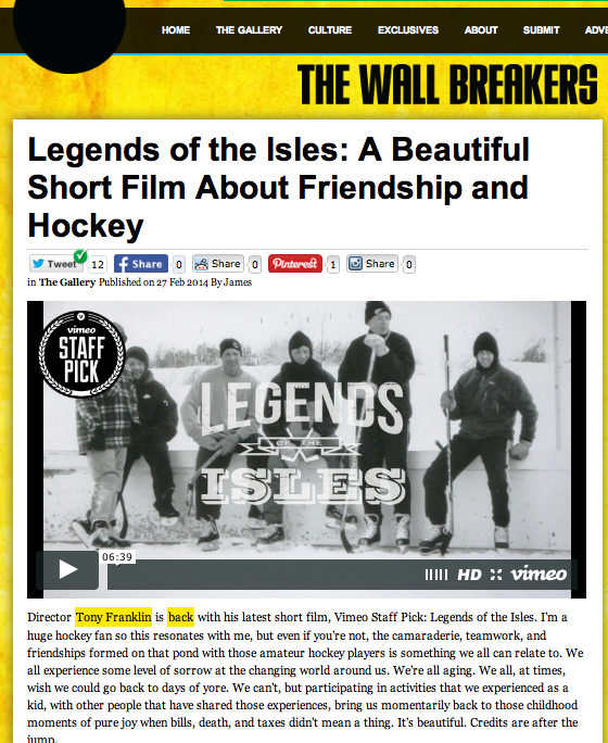 The Wallbreakers is well curated blog out of NYC who had some kind words to say about our Legends of the Isles Film.